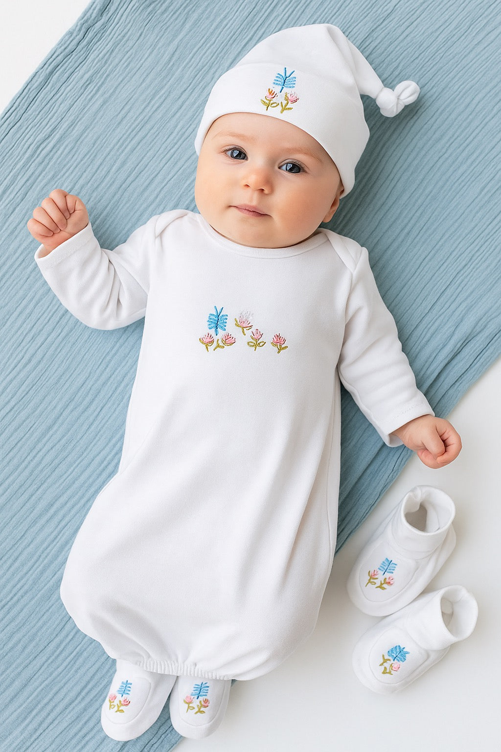Caroline White Cotton Pajamas, Embroidered (EL328)