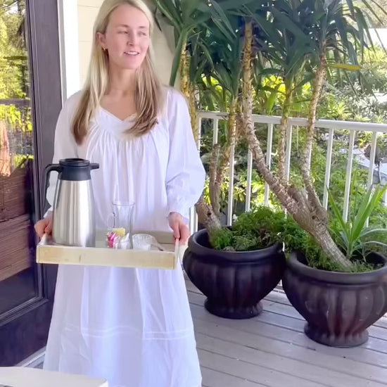 Our 100% cotton lawn sleepwear is lightweight, breathable, and designed for comfort. Since cotton naturally shrinks after the first wash, we’ve accounted for this in our sizing—your nightgown or pajamas may feel roomy at first but will fit just right after washing.