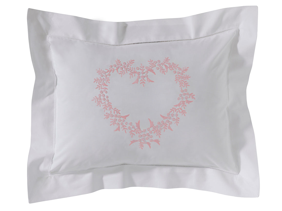 Made from soft, white, 100% Cotton Percale, with embroidery, satin stitch trim, flange and rear envelope opening for the insert.