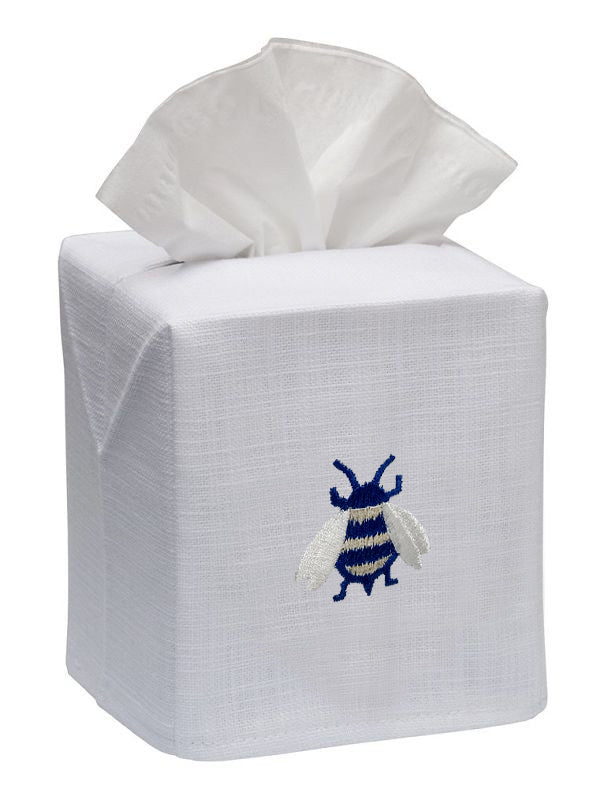 Our navy Napoleon Bee Tissue Box Cover will be a great addition to any room in your home. All our embroidered tissue box covers will transform any rectangular tissue box into a display of art!