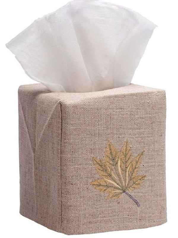 Tissue Box Cover, Natural Linen, Maple Leaf (Honey Gold)