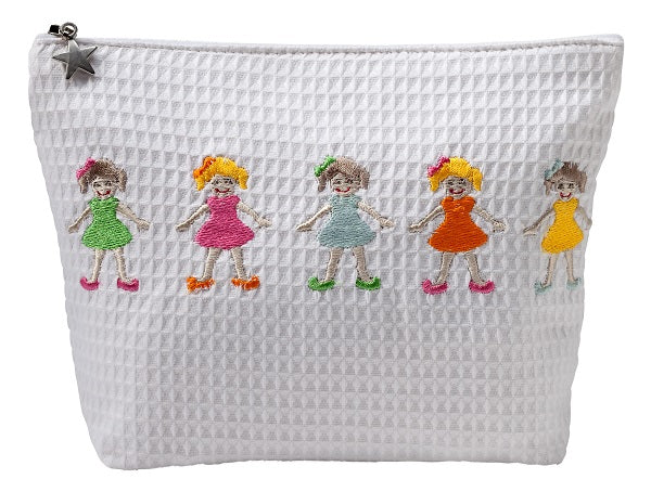 Cosmetic Bag (Medium), Waffle Weave, Row of Girls