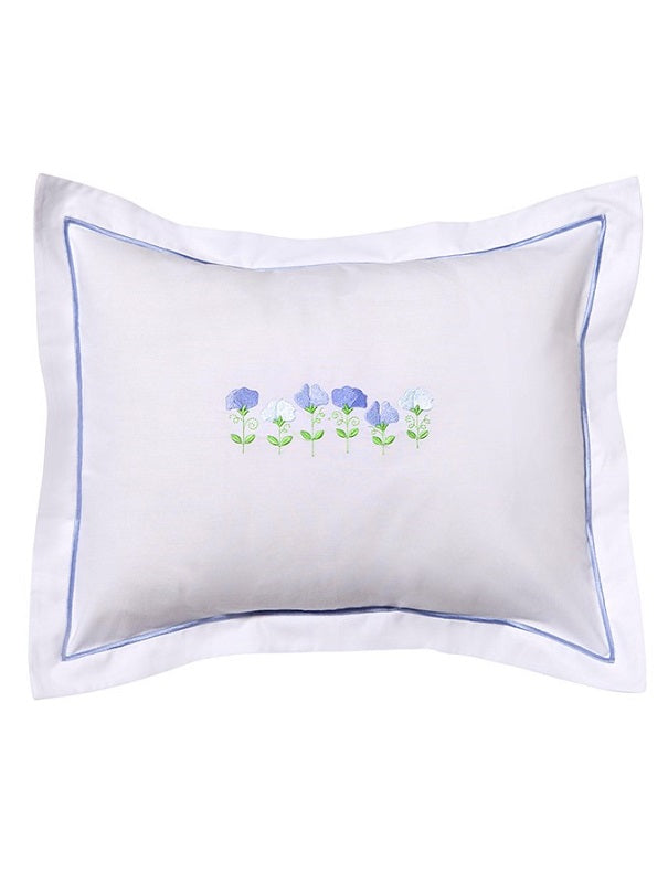 Boudoir Pillow Cover, Row of Sweet Peas (Blue)
