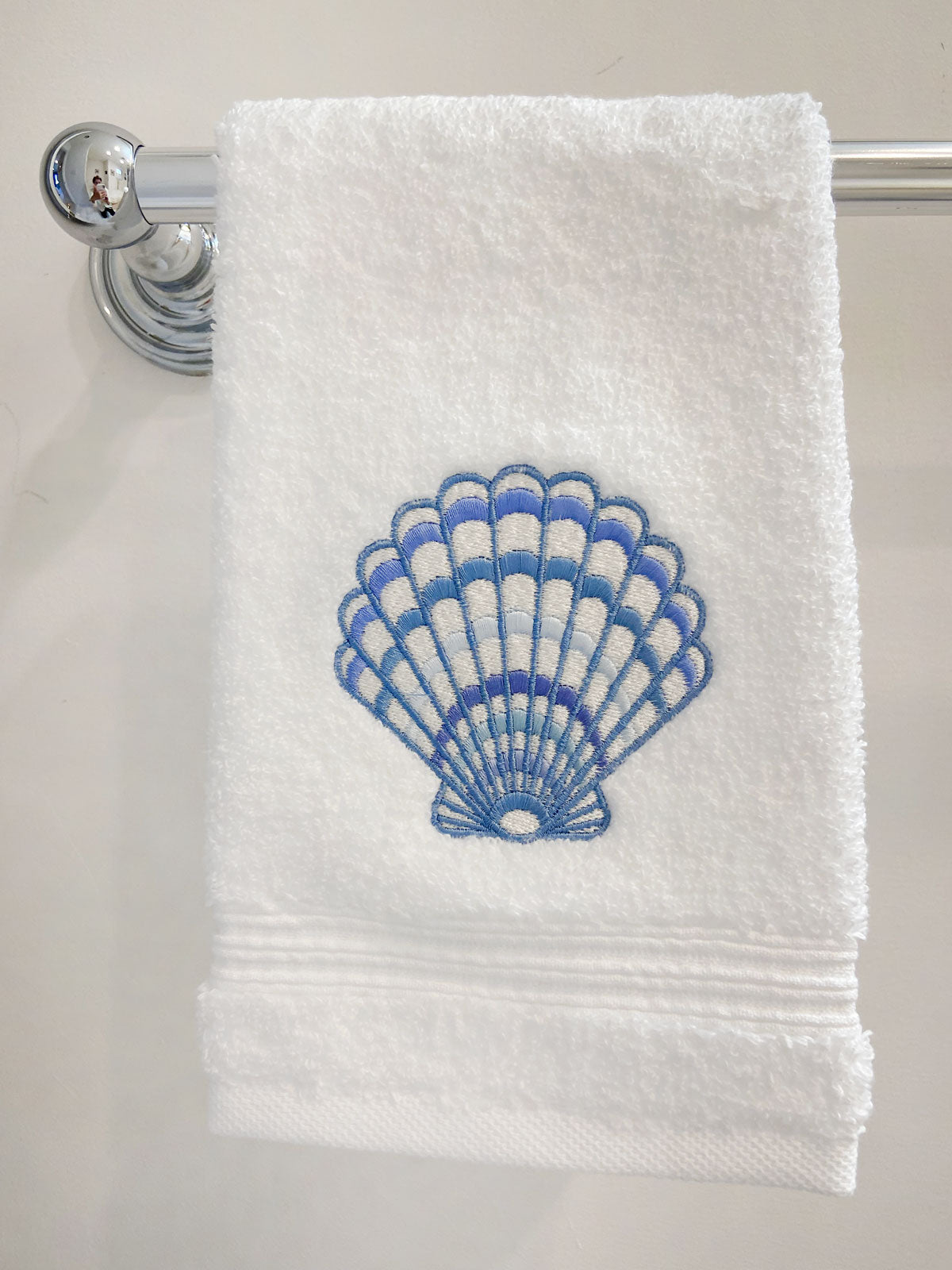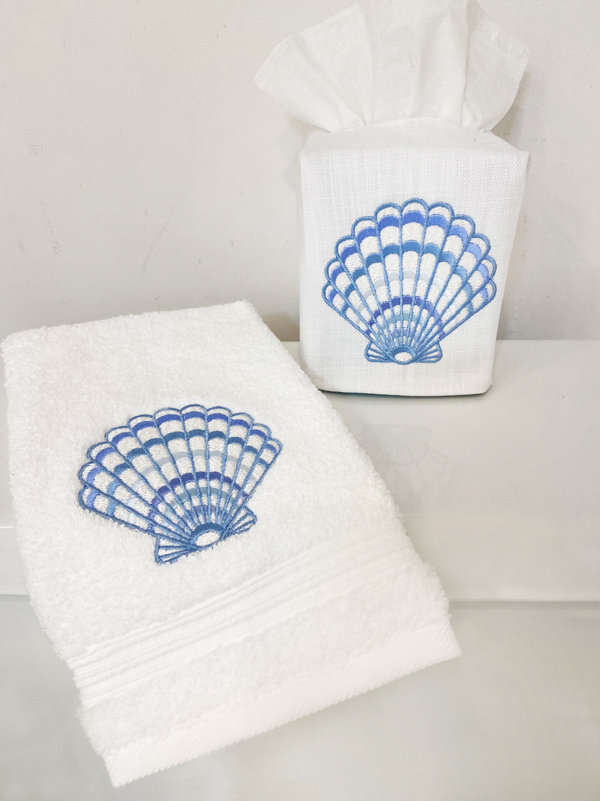 Bring a touch of seaside charm to your bathroom with our Blue Clam Embroidered Terry Guest Towel. Both absorbent and beautiful, this towel is perfect for elevating your guest bathroom or personal space with coastal elegance.