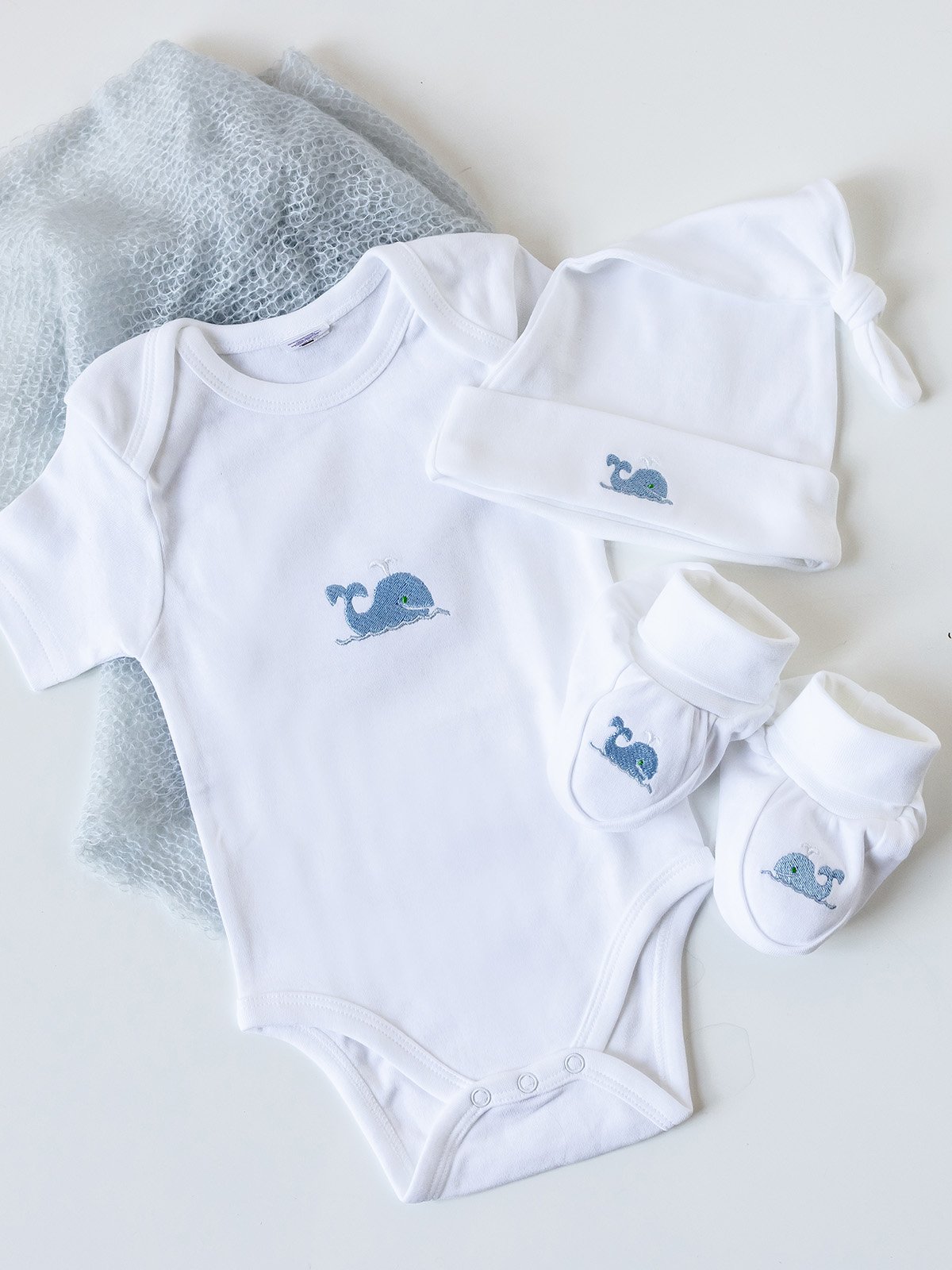 Dress your little one in comfort and charm with our embroidered bundle — a short sleeve onesie, matching knotted hat, and cozy booties. Choose from any of our sweet embroidered designs and save 15% when you bundle these baby essentials.