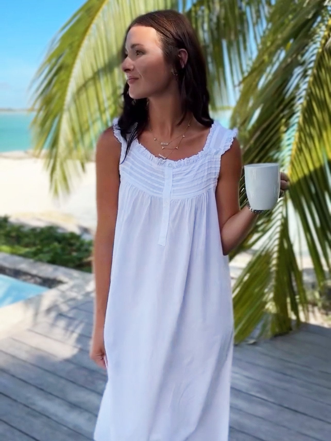 Starfish White Cotton Nightgown, Embroidered ( EL332)