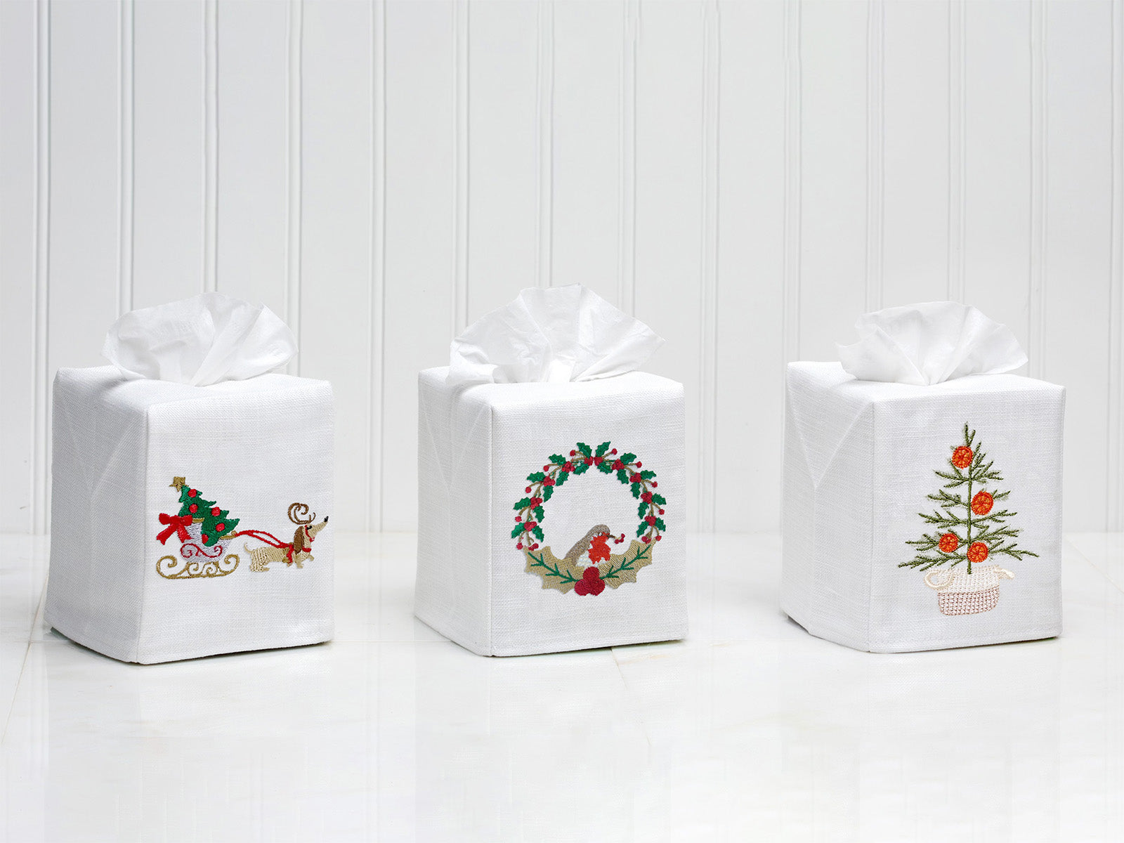Add a festive touch to your space with our holiday embroidered Tissue Box Covers. Made from a soft cotton-linen blend, this luxurious cover brings a fresh, elegant look to any room.