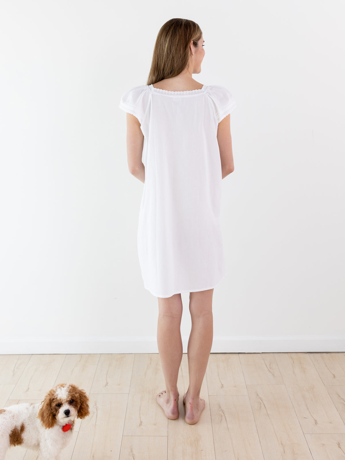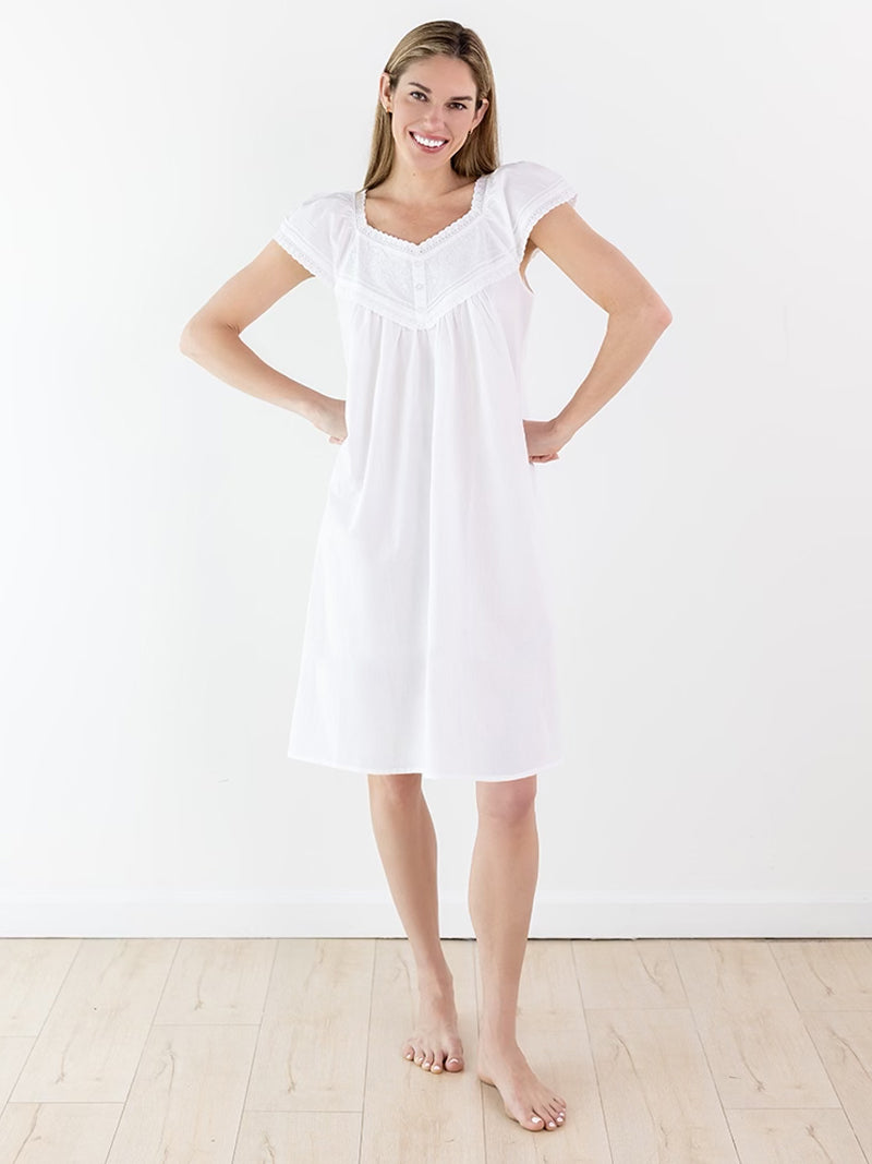 The Valerie nightgown is a divine combination of elegance and charm. This enchanting nightgown features 3 decorative buttons down the front and its adorable short sleeves are adorned with beautiful lace trim. It exudes feminine and grace and is a great style for every season of the year.