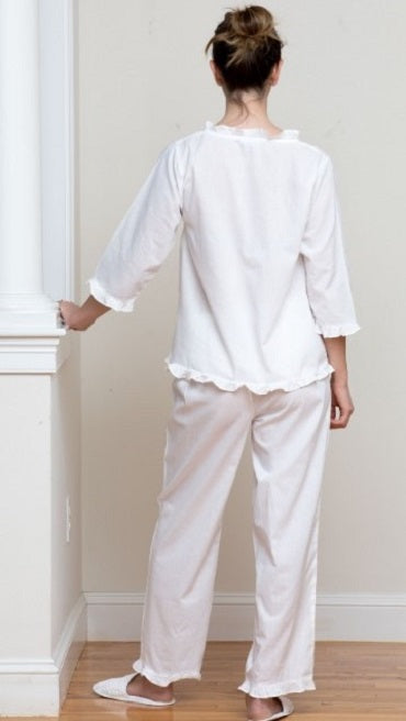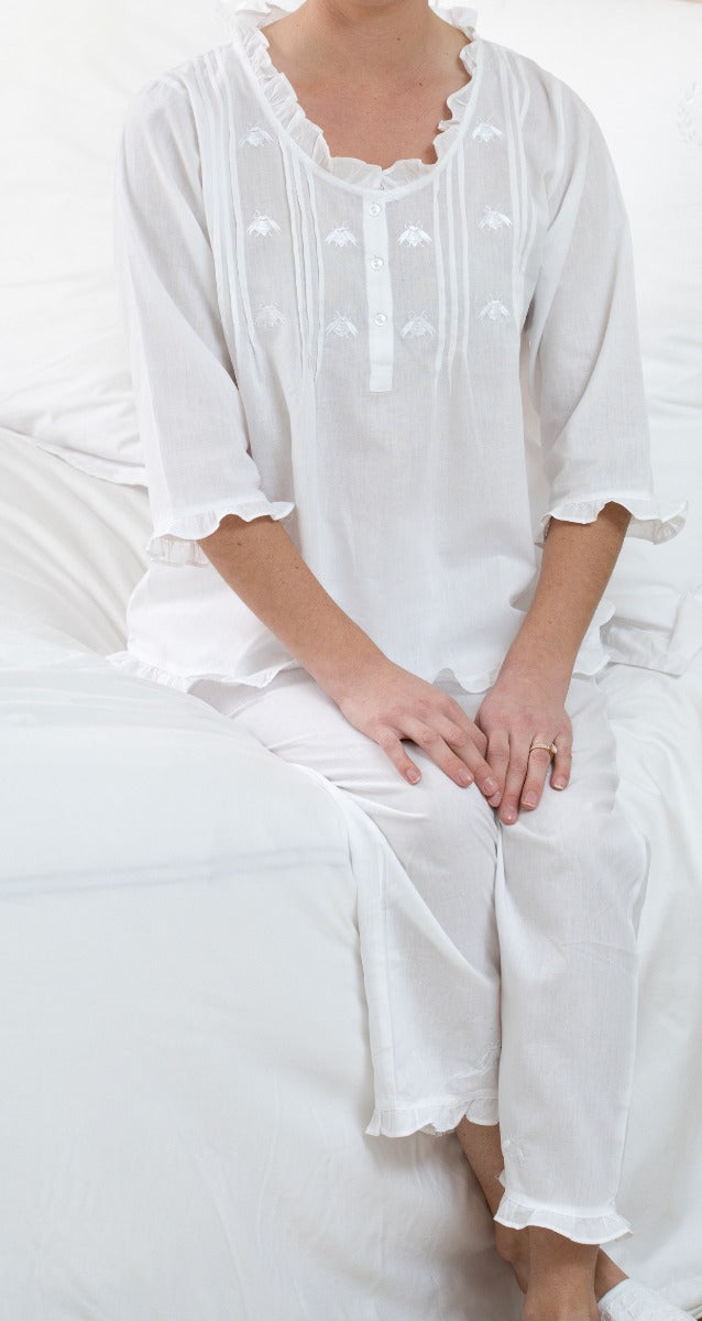 Caroline White Cotton Pajamas, Embroidered