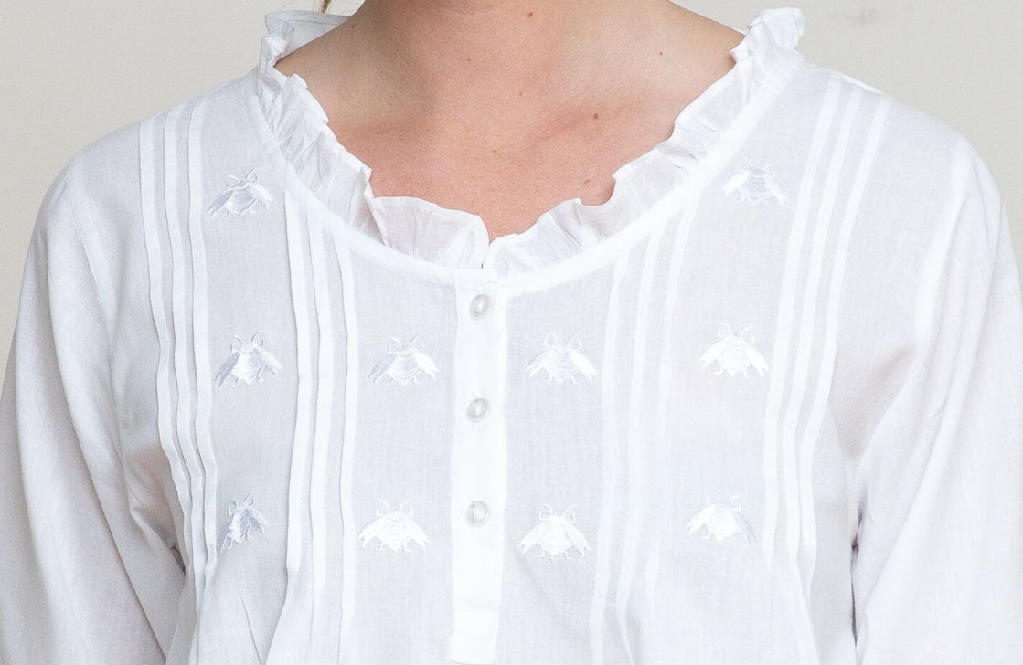 Bee White Cotton Nightgown, Embroidered (EL360)